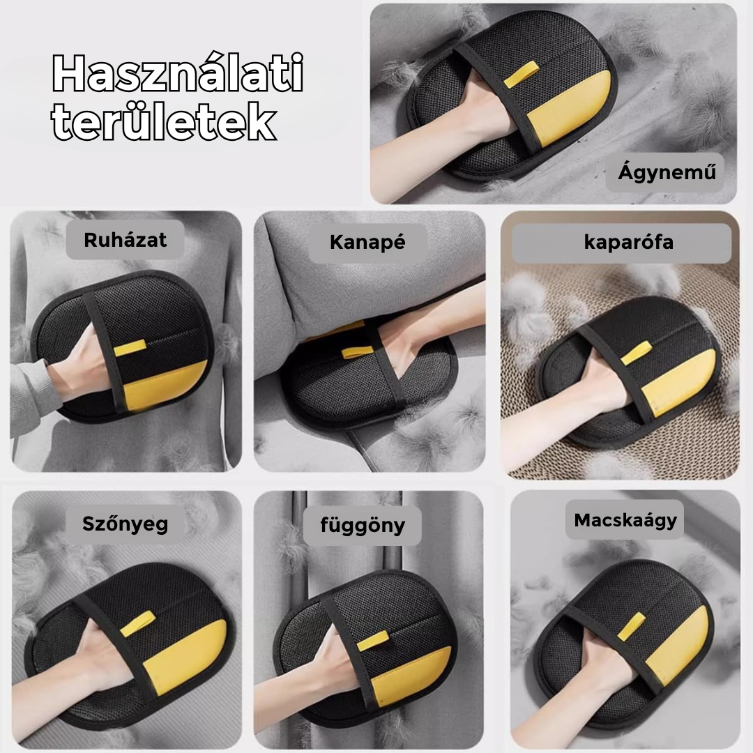 Ez a kesztyű nem dísznek van – az elektrosztatikus felület tényleg működik! Pillanatok alatt összeszedi a szőrt a kanapéról, ruháról, ágytakaróról vagy akár a függönyről. Akár macskád, akár kutyád van, ez a megoldás végre tényleg beválik.